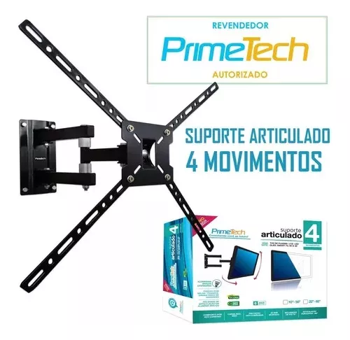 Suporte articulado com 4 movimentos para Tvs de 10" à 56" polegadas da Prime tech, é um suporte de parede articulado projetado para oferecer máxima flexibilidade e ajuste na visualização da sua TV. Adequado para televisores de 10" a 56" polegadas, este modelo possui quatro movimentos principais para proporcionar uma visualização ideal em diversos ângulos.